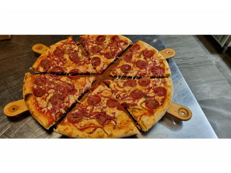 Tomatsaus, ost, pepperoni, skinke