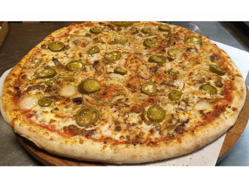 Tomatsaus, ost, biff, kjøttdeig, jalapenos, løk